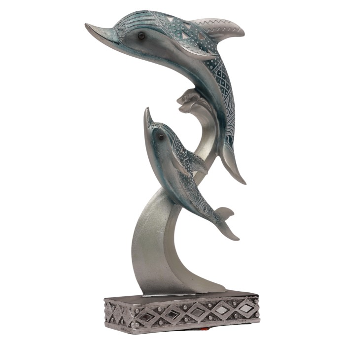 Capture the grace and beauty of dolphins: This sculpture, featuring two dolphins in a dynamic pose, adds a touch of marine elegance to your home decor.