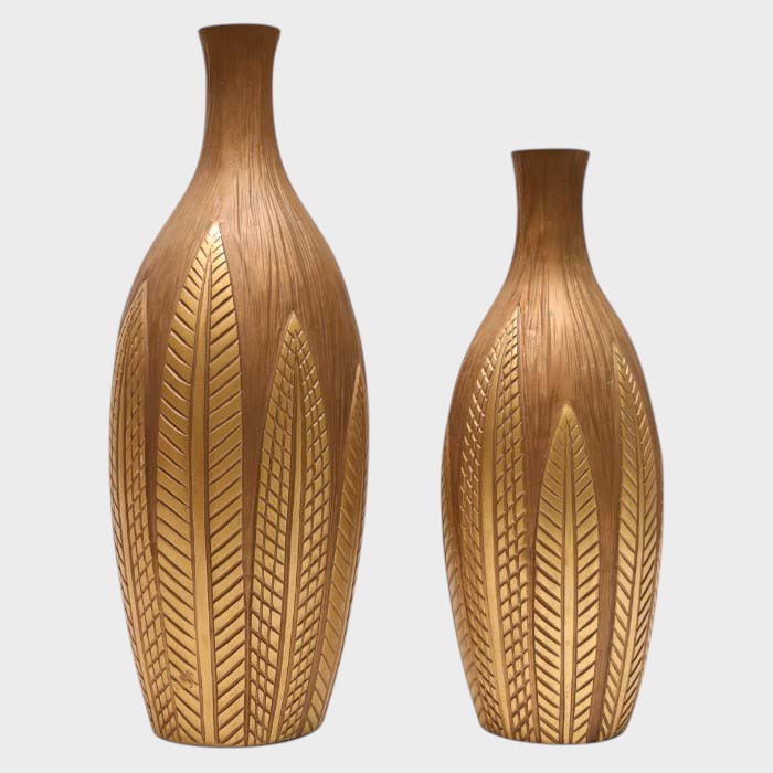 Elegant Carved Metal Vases - Modern Decorative Accents in Warm Tones