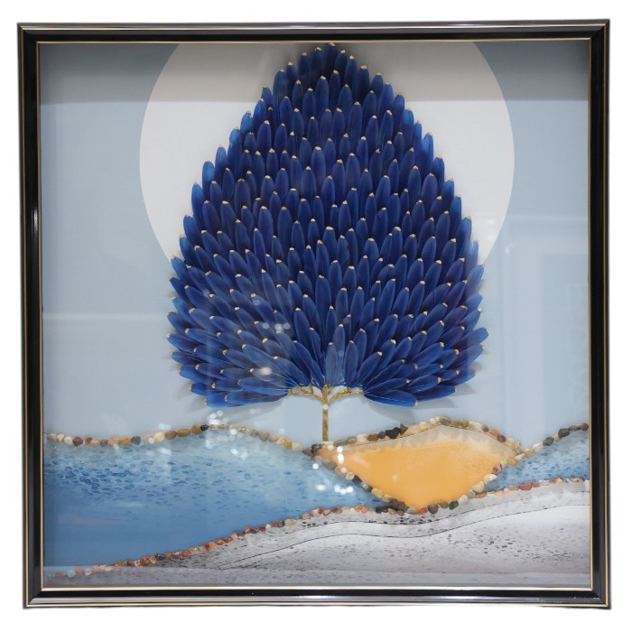 Framed Abstract Landscape Artwork: Modern Nature Inspired Art, Textured Layers, Metallic Bird Accents, Add a Touch of Serene Drama.