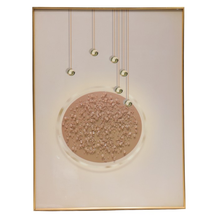 Textured and layered elements: The artwork's surface is rich with texture, adding depth and tactile interest to the design.