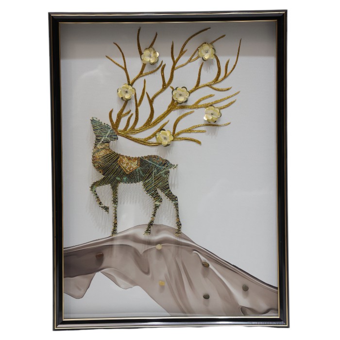 3D sculptural elements: The deer and antlers are crafted with a sense of depth and texture, adding a unique tactile quality to the piece.