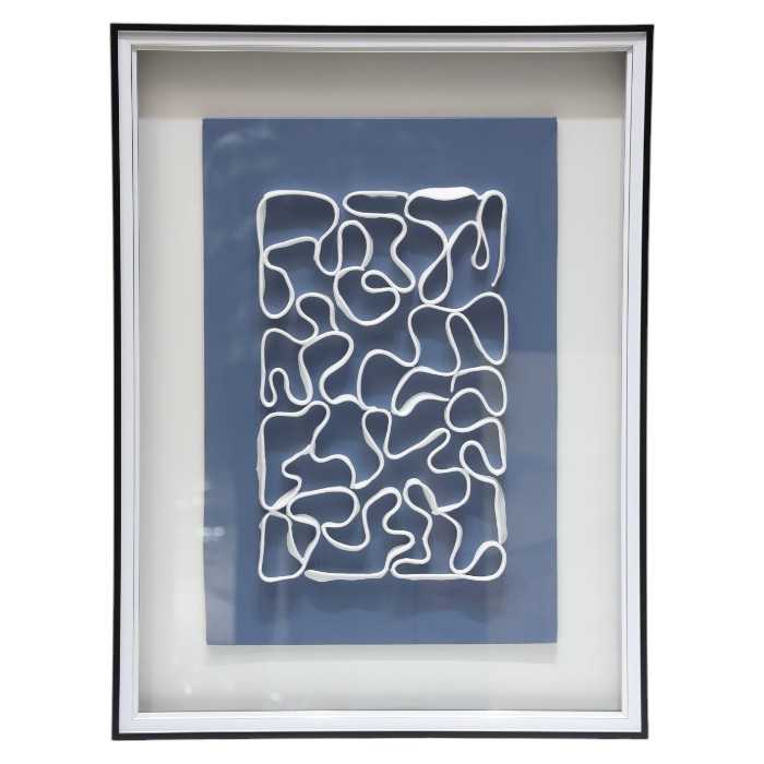 Framed White Squiggle Line Artwork: 3D Abstract Design, Modern Wall Decor, Textured Lines on Blue, Add Contemporary Artistry to Your Space.