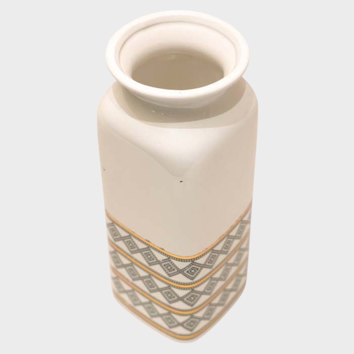 Elevate your home with modern patterns: This ceramic vase features a distinct geometric patterned band around its body and a subtly flared neck, creating a stylish and eye-catching decorative piece.