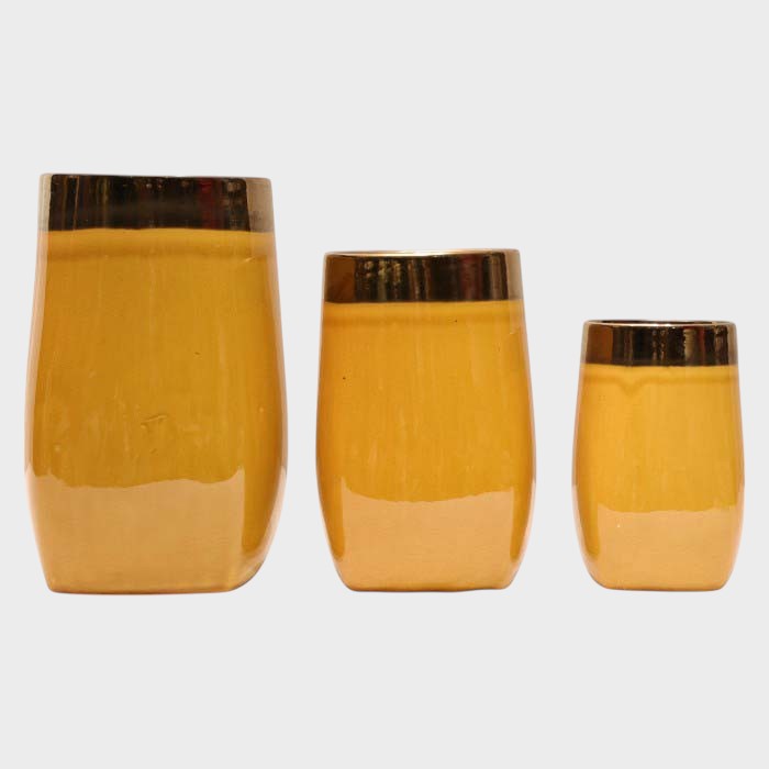 Modern Textured Ceramic Vases with Metallic Rims - Elegant Decorative Accents (set of 4)