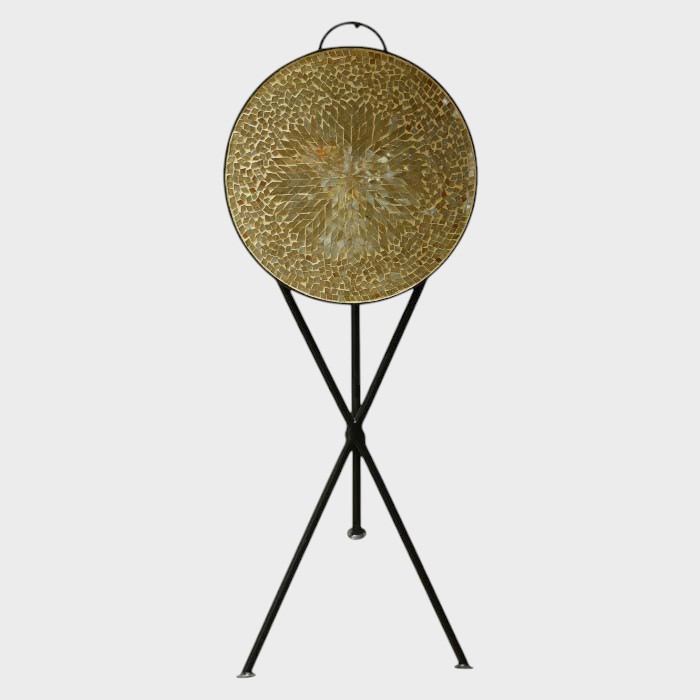 Mosaic Tray Table with Metal Stand: Round Accent Table, Handcrafted Mosaic Design, Portable Side Table, Add Artistic Flair to Your Space.