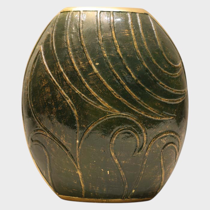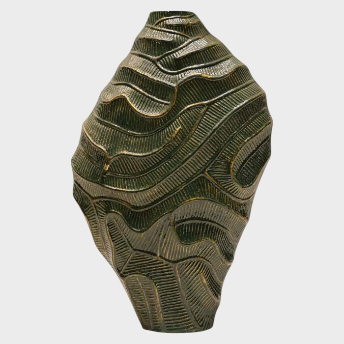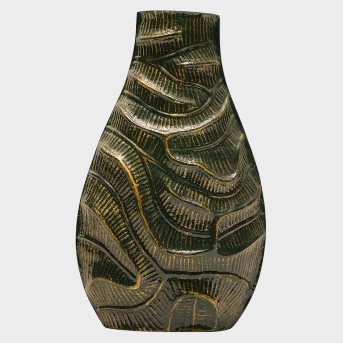 Sculpted Green and Gold Textured Vase - Modern Artistic Home Accent