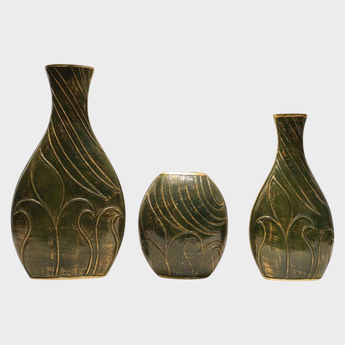 Elegant Gold Embossed Decorative Vases -Varied Height Modern Accents (set of 3)