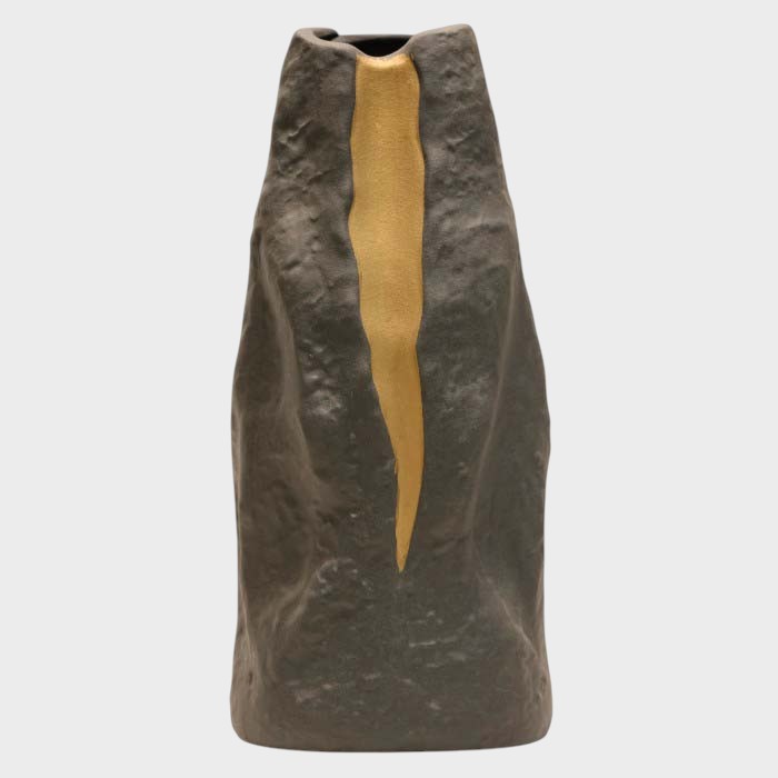 Textured Charcoal Vase with Gold Inlay - Modern Sculptural Accent