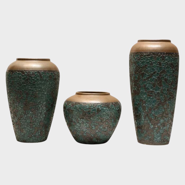 Modern Textured Ceramic Vases with Metallic Rims - Elegant Decorative Accents (set of 4)