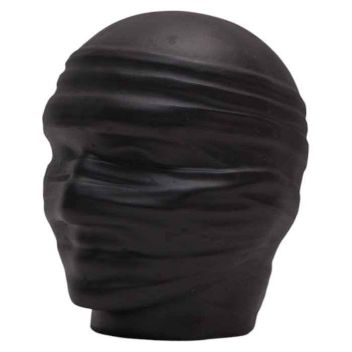 Textured Head Sculpture: Wrapped Design, Intriguing Form, Contemporary Artistic Accent for Modern Interiors.